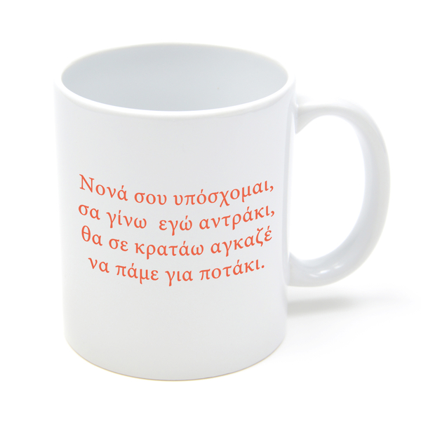 - Στην κούπα τυπώνετε την φωτογραφία σας από την μια όψη της και από την άλλη όψη της το σχέδιο Νονά Αντράκι που εσείς επιλέξατε.