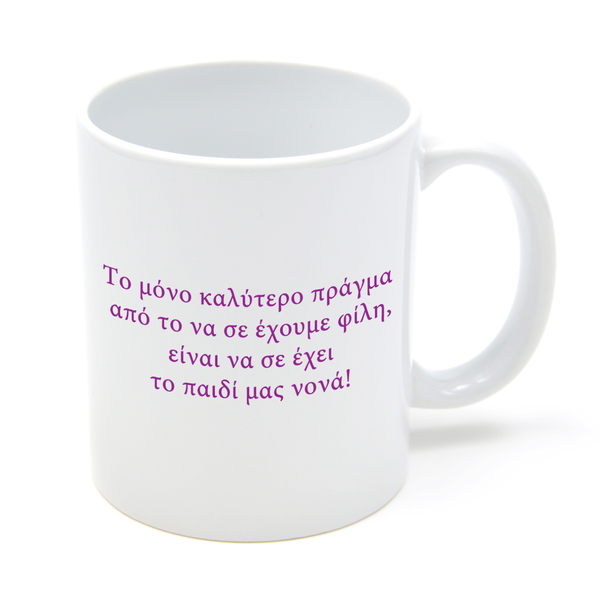 - Στην κούπα τυπώνετε την φωτογραφία σας από την μια όψη της και από την άλλη όψη της το σχέδιο Νονά που εσείς επιλέξατε.