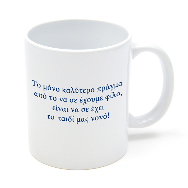 - Στην κούπα τυπώνετε την φωτογραφία σας από την μια όψη της και από την άλλη όψη της το σχέδιο Νονός που εσείς επιλέξατε.