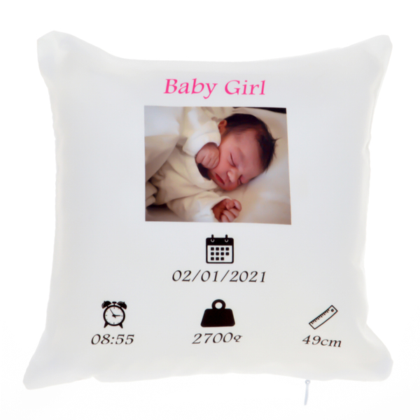 Μαξιλάρι Τετράγωνο - Στοιχεία Γέννησης & Φωτογραφία Baby Girl