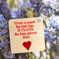 Μπρελόκ με υφή ξύλου που έχει πάνω του εκτυπωμένο, ένα έτοιμο σχέδιο της επιλογής σας.