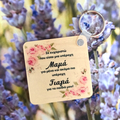Μπρελόκ με υφή ξύλου που έχει πάνω του εκτυπωμένο, ένα έτοιμο σχέδιο της επιλογής σας.