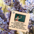 Μπρελόκ με υφή ξύλου που έχει πάνω του εκτυπωμένο, ένα έτοιμο σχέδιο της επιλογής σας.