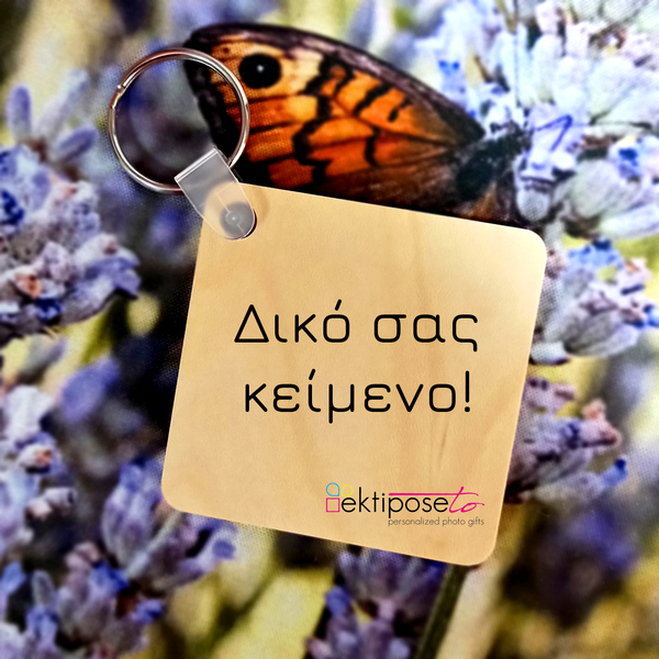 Μπρελόκ με υφή ξύλου που έχει πάνω του εκτυπωμένο, ένα κείμενο της επιλογής σας.