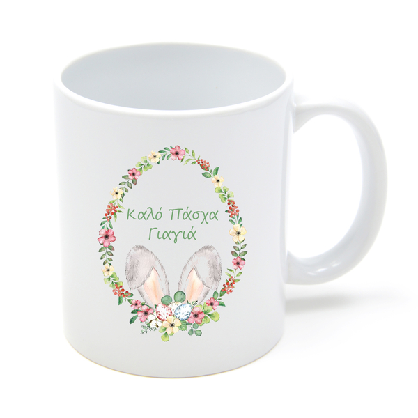 - Στην κούπα τυπώνετε την φωτογραφία σας από την μια όψη της και από την άλλη όψη της το σχέδιο Καλό Πάσχα Γιαγιά Πλαίσιο που εσείς επιλέξατε.