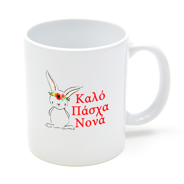 - Στην κούπα τυπώνετε την φωτογραφία σας από την μια όψη της και από την άλλη όψη της το σχέδιο Καλό Πάσχα Νονά Λαγουδάκι που εσείς επιλέξατε.