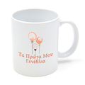 - Στην κούπα τυπώνετε την φωτογραφία σας από την μια όψη της και από την άλλη όψη της το σχέδιο Πρώτα Γενέθλια Ροζ που εσείς επιλέξατε.