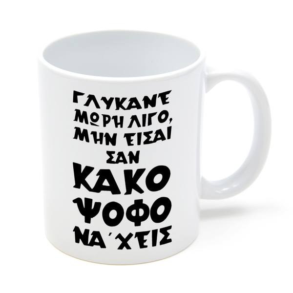 - Στην κούπα τυπώνετε την φωτογραφία σας από την μια όψη της και από την άλλη όψη της το σχέδιο Γλύκανε λίγο που εσείς επιλέξατε.