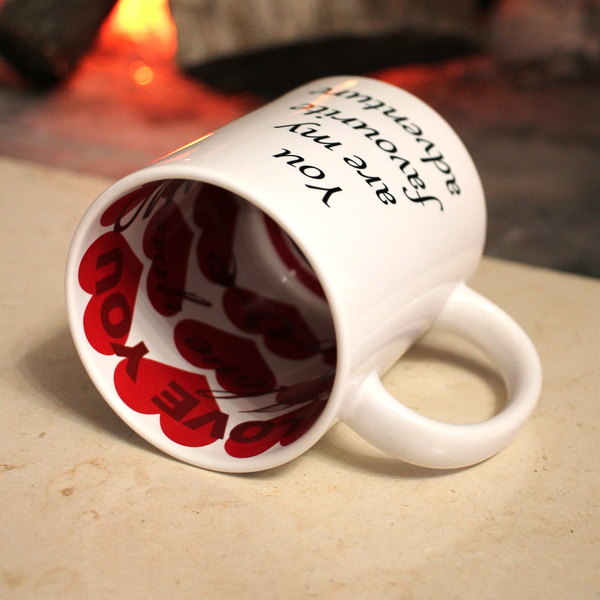- Η κούπα έχει καρδίες κόκκινες τυπωμένες στο εσωτερικό της και γράφει I LOVE YOU.