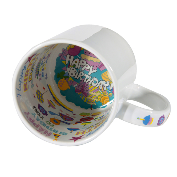 - Η κούπα το σχέδιο Happy Birthday στο εσωτερικό της.