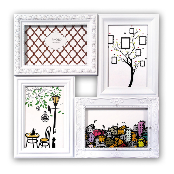 Πολυκορνίζα τοίχου τετράγωνη Λευκή με 4 φωτογραφίες