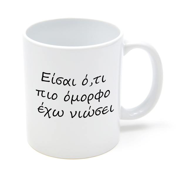 - Στην κούπα τυπώνετε την φωτογραφία σας από την μια όψη της και από την άλλη όψη της το σχέδιο Πιο Όμορφο που εσείς επιλέξατε.